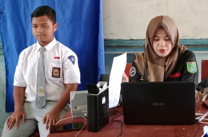 LANGKAR.ID, Batulicin – Dinas Kependudukan dan Pencatatan Sipil (Disdukcapil) Kabupaten Tanah Bumbu (Tanbu) melakukan perekaman KTP Elektronik kepada pelajar SMAN 1 Kusan Hilir, Selasa (25/10/2022).