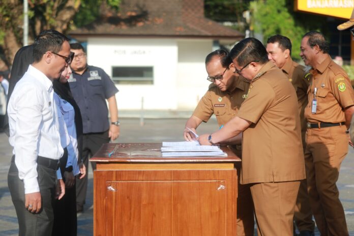 LANGKAR.ID BANJARMASIN – Wali Kota Banjarmasin, Ibnu Sina menggelar Apel pagi sekaligus penyerahan Surat Keputusan (SK) Pegawai Pemerintah dengan Perjanjian Kerja (PPPK) di Halaman Balai Kota Banjarmasin pada Selasa (27/6/2023).