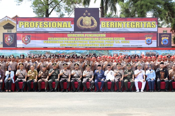 LANGKAR.ID, Banjarbaru – Sekolah Polisi Negara (SPN) Polda Kalimantan Selatan (Kalsel), menggelar upacara penutupan pelantikan dan pengambilan sumpah Siswa Pendidikan Pembentukan (Diktuk) Tamtama Polri Tahun Anggaran 2024, Rabu (18/12/2024).