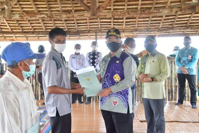 LANGKAR.ID, Kandangan – Bupati Hulu Sungai Selatan (HSS), Achmad Fikry menyerahkan 136 sertifikat program kegiatan pembukaan sawah tahun 2017, kepada pemilik sawah di Desa Paharangan, Kecamatan Daha Utara.