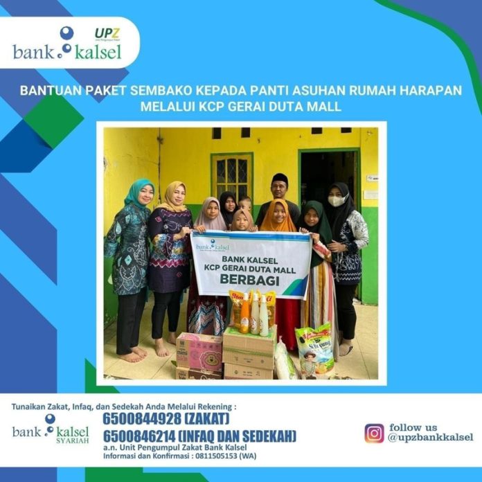 Berdasarkan hal tersebut sebagai bentuk kepedulian dan memberikan rasa bahagia kepada anak yatim piatu UPZ Bank Kalsel memberikan paket sembako kepada Panti Asuhan Rumah Harapan melalui KCP Gerai Duta Mall.