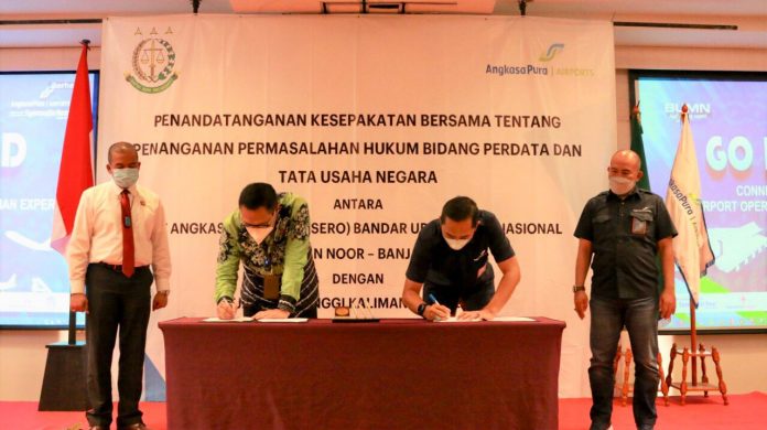 Pada kesempatan itu, disepakati kerjasama penanganan permasalahan hukum bidang perdata dan tata usaha negara antara PT Angkasa Pura I dengan Kejati Kalsel.