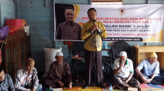 Anggota DPRD Provinsi Kalimantan Selatan (Kalsel) Athaillah Hasbi sosialisasikan Revitalisasi dan Aktualisasi Nilai-Nilai Pancasila di Desa Layuh Kecamatan Batu Benawa Kabupaten Hulu Sungai Tengah, Ahad (26/2/2023)