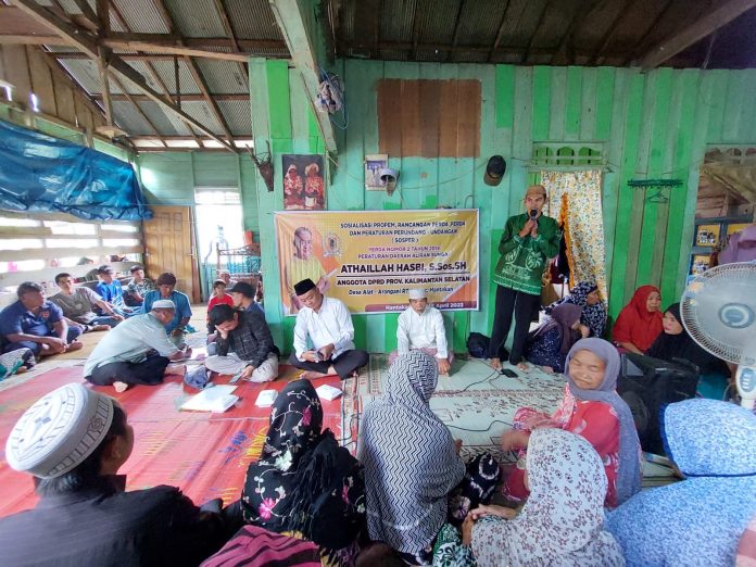 LANGKAR.ID BARABAI – Anggota DPRD Kalimantan Selatan (Kalsel) Athaillah Hasbi mensosialisasikan Peraturan Daerah no 2 Tahun 2019 Tentang Pengelolaan Daerah Aliran Sungai (DAS) guna mengantisipasi banjir.