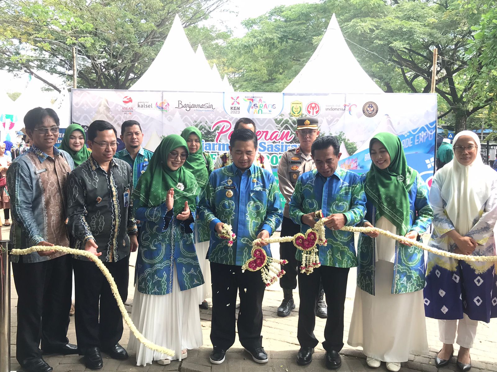 LANGKAR.ID BANJARMASIN – Walikota Banjarmasin, Ibnu Sina dan Wakilnya, Arifin Noor menandai pembukaan Banjarmasin Sasirangan Festival (BSF) Ke-7 dengan menggunting pita bunga di halaman Siring Menara Pandang, Jumat (10/03/2023).