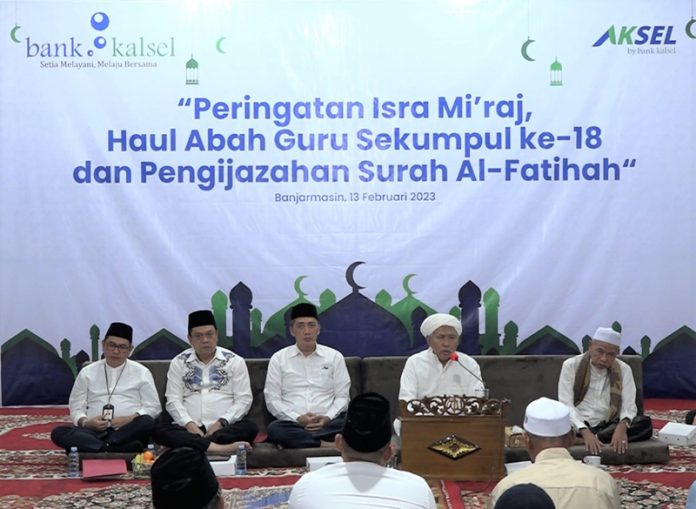 LANGKAR.ID BANJARMASIN – Sebagai bentuk penerapan atas implementasi corporate culture berbasis spiritual, Bank Kalsel gelar program keagamaan bertajuk; Peringatan Isra Mi’raj, Haul Abah Guru Sekumpul ke-18 dan Pengijazahan Surah Al-Fatihah.