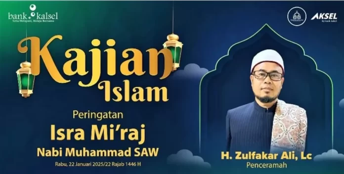 LANGKAR.ID, Banjarmasin – Bank Kalsel menggelar peringatan Isra Miraj dengan menghadirkan penceramah H. Zulfakar Ali Lc pada Rabu, 22 Januari 2025 atau 22 Rajab 1446 H. Kegiatan ini bertujuan memperkuat keimanan umat Muslim terhadap peristiwa Isra Miraj, yang merupakan bagian dari akidah Islam.