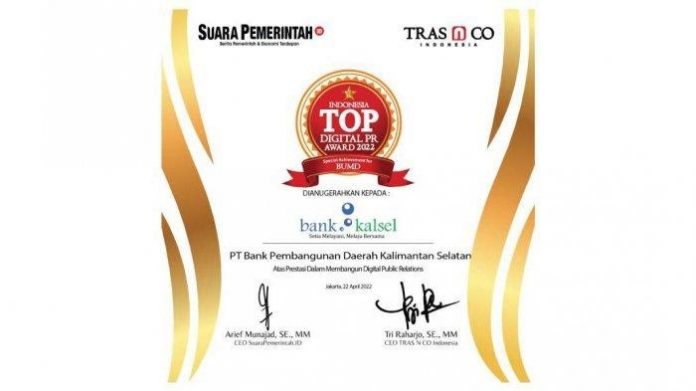 Indonesia TOP Digital PR (Public Relation) Award 2022 ini diharapkan menjadi stimulus untuk semakin berkembang dan memacu Bank Kalsel mengoptimalkan penggunaan media digital.