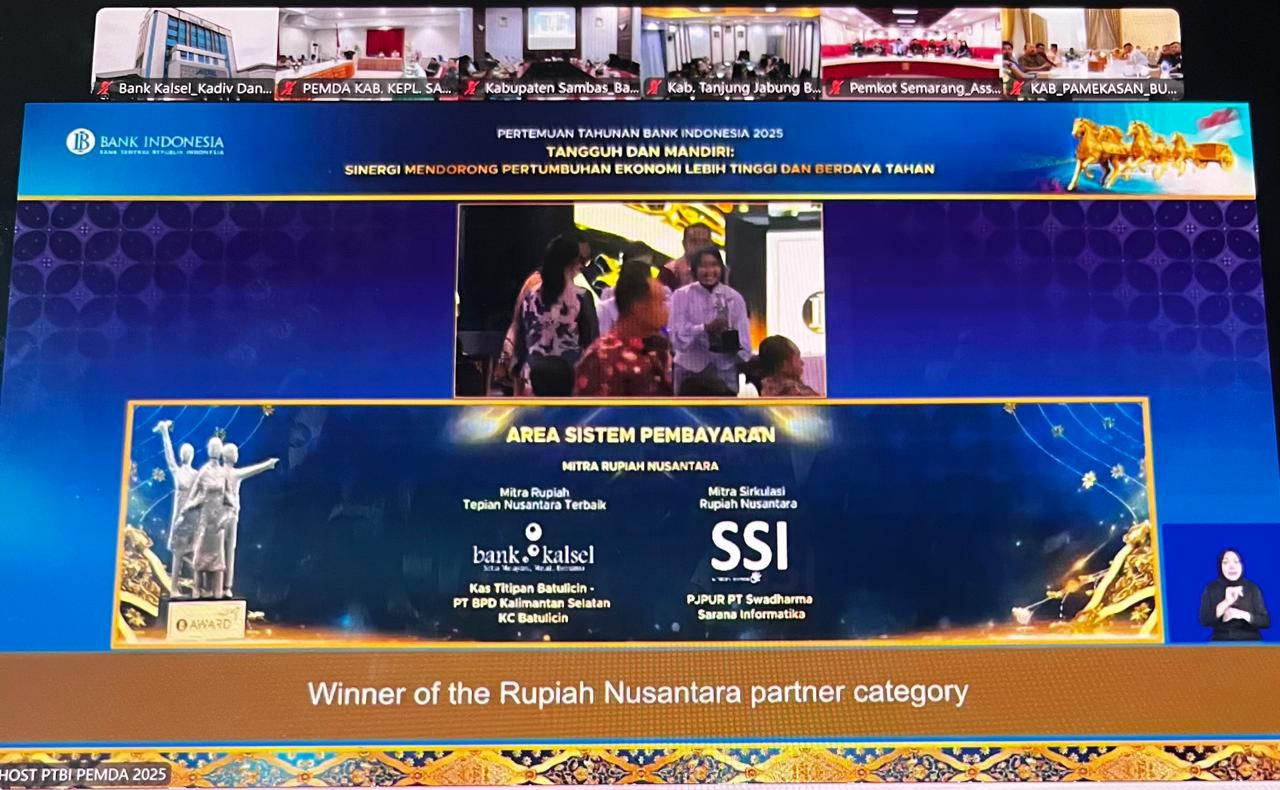 Penghargaan ini diumumkan dalam gelaran PTBI 2025 yang berlangsung serentak se-Indonesia dan dipusatkan di Kantor Pusat BI Jakarta, dihadiri Presiden Prabowo Subianto. Untuk wilayah Kalsel, kegiatan berlangsung di Hotel Fugo Banjarmasin, Jumat (28/11).