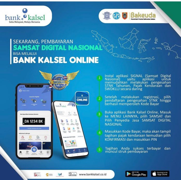 Kali ini, melalui aplikasi Bank Kalsel Online, masyarakat bisa melakukan pembayaran Samsat Digital Nasional (SIGNAL).