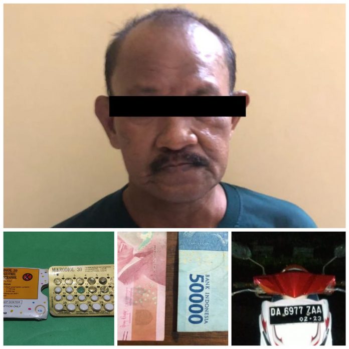 Polisi turut mengamankan sejumlah barbuk. Seperti uang tunai Rp 150.000, 16 butir PIL KB merk Mikrodiol 30, dan satu epeda motor Mio Soul putih nopol DA 6977 ZAA. (L008)