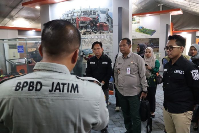 Rombongan BPBD Kalsel yang terdiri dari sejumlah kepala bidang dan staf, mempelajari berbagai fasilitas BPBD Jatim, mulai dari simulator gempa di Taman Edukasi Bencana hingga sistem operasional di Pusdalops. Mereka juga berdiskusi intensif mengenai pengelolaan informasi bencana dan pemberdayaan masyarakat melalui edukasi berbasis usia.
