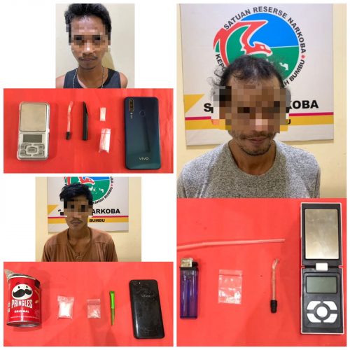 LANGKAR.ID, Batulicin – Satnarkoba Polres Tanah Bumbu meringkus tiga pengedar narkoba. Ketiganya diringkus di hari yang sama, namun waktu dan tempat yang berbeda.