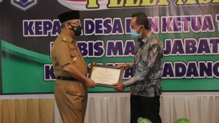 Dalam acara itu, Camat Padang Batung, Heri Utomo mengungkapkan, ada tiga Kades berakhir masa baktinya pada tahun 2021.