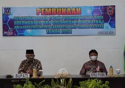 LANGKAR.ID, Kandangan – Pola pikir seorang PNS harus pada posisi melayani masyarakat bukan untuk minta dilayani. Hal tersebut ditegaskan Bupati Hulu Sungai Selatan (HSS), Achmad Fikry saat membuka Latihan Dasar (Latdas) Calon Pegawai Negeri Sipil (CPNS) di Gedung 2 Badan Kepegawaian dan Pengembangan Sumber Daya Manusia (BKPSDM) HSS, Jum’at (15/10/21).