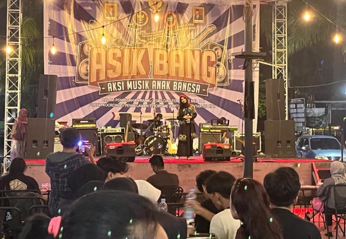 LANGKAR.ID, Banjarmasin – Aksi Musik Anak Bangsa (Asik Bang) digelar Forum Koordinasi Pencegahan Terorisme (FKPT) Kalimantan Selatan (Kalsel) di Pusat kuliner Taher Square, Jalan Kapten Piere Tendean, Rabu (15/11/2023) malam.