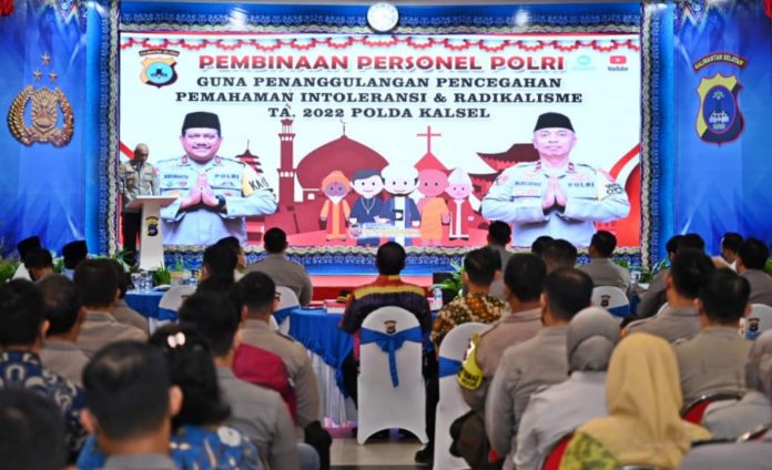 LANGKAR.ID, Banjarmasin – Guna penanggulangan dan pencegahan pemahaman intoleransi dan radikalisme, Polda Kalimantan Selatan (Kalsel) menggelar pembinaan rohani kepada personel di Aula Bhayangkari Mathilda Batlayeri, Jum’at (10/6/2022).