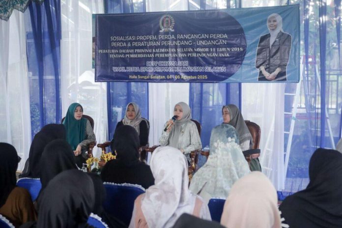 LANGKAR.ID, Hulu Sungai Selatan – Kasus kekerasan dalam rumah tangga (KDRT) dan pernikahan anak masih menghantui sejumlah wilayah di Kalimantan Selatan. Menyikapi kondisi ini, Wakil Ketua DPRD Kalsel, Desy Oktavia Sari, turun langsung ke Desa Jambu Hilir, Hulu Sungai Selatan, untuk mensosialisasikan Perda Kalsel Nomor 11 Tahun 2018 tentang Pemberdayaan Perempuan dan Perlindungan Anak, Selasa (5/8/2025).