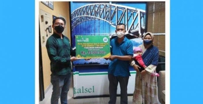 Penyerahan bantuan dilakukan secara simbolis oleh Staf Kantor Cabang Marabahan, diterima langsung oleh orangtua Thalihah Ahmad Nawawi dan Siti Nurjanah.