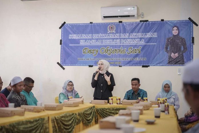 LANGKAR.ID, Tapin – Wakil Ketua DPRD Provinsi Kalimantan Selatan, Desy Oktavia Sari, menegaskan pentingnya mengaktualisasikan nilai-nilai Pancasila dalam kehidupan sehari-hari melalui sosialisasi yang digelar di Kabupaten Tapin.