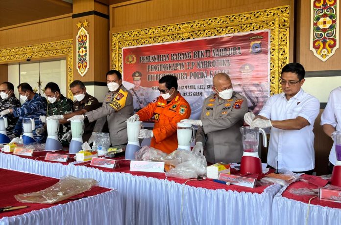 LANGKAR.ID, Banjarmasin – Direktorat Reserse Narkoba (Ditresnarkoba) Polda Kalimantan Selatan (Kalsel) menggelar pemusnahan dan pengungkapan narkotika di, Halaman Polda Kalsel, Rabu (8/5/2034).