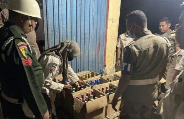 LANGKAR.ID, Batulicin – Satpol PP Kabupaten Tanah Bumbu mengamankan 15 Dus minuman beralkohol dari sebuah rumah bedakan di Desa Satui Barat, Kecamatan Satui.