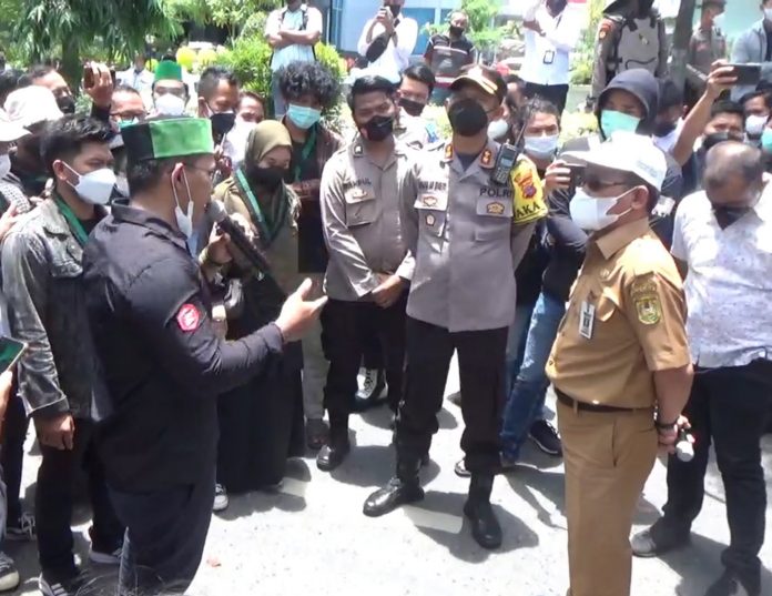 Tudingan dilontarkan massa Himpunan Mahasiswa Islam (HMI) Kota Banjarmasin saat demo di DPRD Kalsel, Senin (20/09/2021).