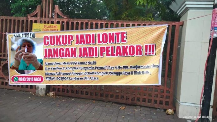 LANGKAR.ID, Banjarmasin – Beredar di media sosial spanduk bertuliskan “Cukup jadi Lonte, Jangan jadi Pelakor” membuat heboh warga Banjarmasin.