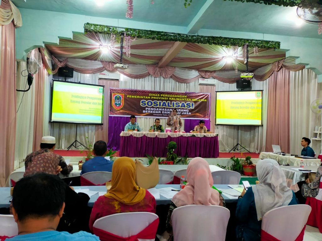 LANGKAR.ID, Banjarmasin – Dinas Perdagangan (Disdag) Provinsi Kalimantan Selatan (Kalsel) menggelar sosialisasi pengawasan terhadap barang beredar dan jasa di Kabupaten Tapin, pada Jumat (25/10/2024). Kegiatan ini bertujuan untuk memberikan edukasi kepada konsumen dan pelaku usaha mengenai barang yang aman dan sesuai dengan ketentuan yang berlaku, serta memastikan pengawasan yang ketat untuk melindungi hak-hak konsumen.