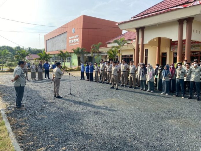 LANGKAR.ID, Batulicin – Jajaran pejabat Dinas Perumahan Pemukiman Pertanahan (Disperkimtan) mengikuti apel pagi bersama Kantor Pertanahan Kabupaten Tanah Bumbu, Kamis (17/01/2023).