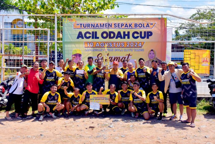 LANGKAR.ID,Banjarmasin – Gelaran *Turnamen Sepak Bola Acil Odah Cup 2024* sukses berlangsung dengan meriah, mempertemukan delapan tim dari berbagai instansi di Kalimantan Selatan. Tim Dinas Pemuda dan Olahraga (Dispora) Kalsel keluar sebagai juara pertama setelah menaklukkan Bank Kalsel di final, yang digelar Sabtu (10/8/2024) di Lapangan Kayu Tangi, Banjarmasin. Posisi ketiga diraih oleh tim Adpim Provinsi Kalsel, sementara Jurnalis Kalsel FC menempati peringkat keempat.