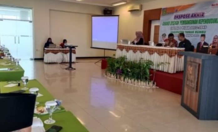 LANGKAR.ID, Batulicin – Dinas Keluarga Berencana Pemberdayaan Perempuan dan Perlindungan Anak (DKBP3A) Kabupaten Tanah Bumbu (Tanbu) menggelar ekspose akhir penyusunan dan pemanfaatan dokumen Grand Design Pembangunan Kependudukan (GDPK) 5 Pilar.