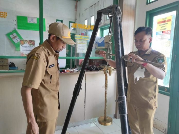 LANGKAR.ID, Batulicin – Dinas Koperasi Usaha Mikro Perdagangan dan Perindustrian (DKUMP2) Tanah Bumbu melakukan peneraan pada alat UTTP di Puskesmas di Kecamatan Kusan Hulu, Senin (14/02/2022).