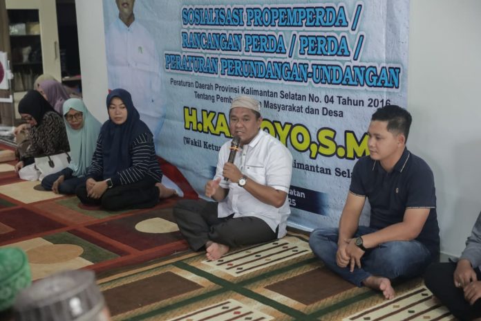 LANGKAR.ID, Kandangan – Wakil Ketua DPRD Provinsi Kalimantan Selatan, Kartoyo, mengajak masyarakat desa berperan aktif dalam mendukung program Makan Bergizi Gratis (MBG) dengan memanfaatkan potensi lokal. Hal ini disampaikan saat Sosialisasi Peraturan Daerah (Perda) Provinsi Kalsel Nomor 04 Tahun 2016 tentang Pemberdayaan Masyarakat dan Desa, yang digelar di Desa Sungai Paring, Kecamatan Kandangan, Sabtu (18/10/2025).