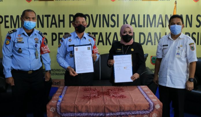 Kerja sama kedua instansi, berlangsung di Kantor Dispersip Kalsel, Rabu (01/09/2021) lalu. Ditandai dengan penandatangan surat perjanjian kerja sama antara Kepala Rutan Kelas II B Pelaihari, Budi Suharto dan Kadispersip Kalsel, Nurliani Dardie.