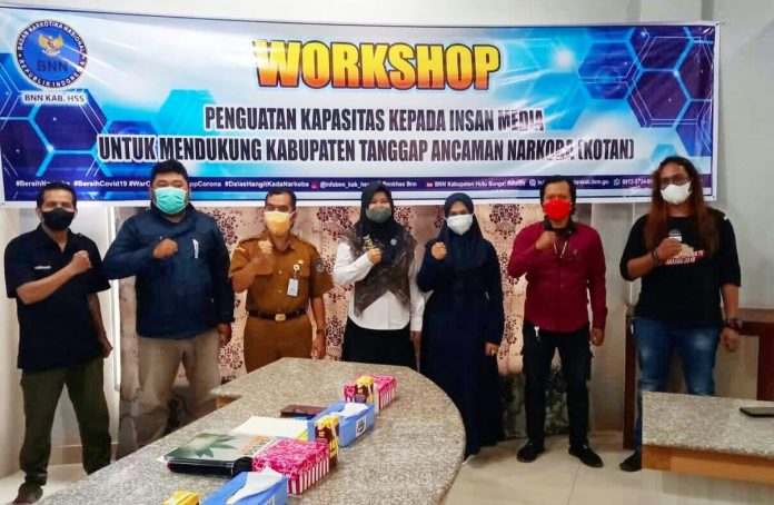 LANGKAR.ID, Kandangan – Badan Narkotika Nasional Kabupaten (BNNK) Hulu Sungai Selatan (HSS) menggandeng awak media atau jurnalis dalam penguatan pencegahan bahaya narkoba. Serta mendukung HSS menjadi Kabupaten Tanggap Ancaman Narkoba (Kotan).