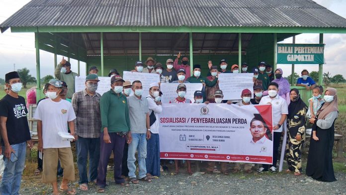 Permasalahan ini, diungkapkan petani saat pertemuan dengan Wakil Ketua DPRD Kalsel, Muhammad Syaripuddin, Jumat (06/08/2021). Pertemuan yang diselenggarakan dengan menerapkan protokol kesehatan Covid – 19 ini, beragendakan Sosialisasi Perda Kalsel Nomor 12 tahun 2019 tentang Penyelenggaraan Cadangan Pangan Daerah.