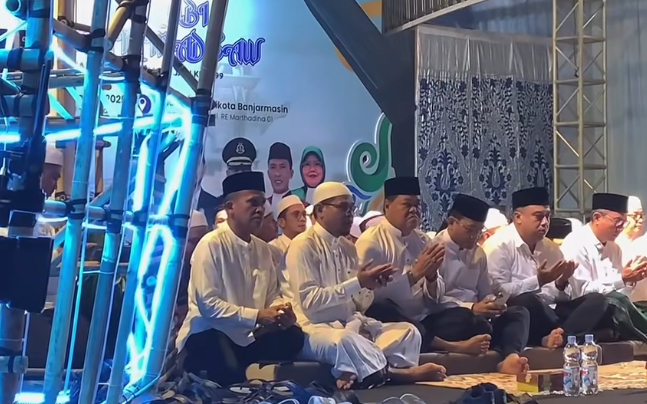 MAULID: Wakil Ketua DPRD Banjarmasin Mathari bersama warga menghadiri peringatan Maulid Nabi Muhammad SAW pada rangkaian Hari Jadi Kota Banjarmasin ke-499 di panggung Siring Balai Kota. – (foto:dprdkotabjm)