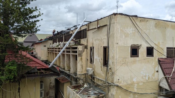 LANGKAR.ID, Banjarmasin – Perbaikan Gedung Biro Sumber Daya Manusia (SDM) Polda Kalimantan Selatan (Kalsel) terus dilakukan, sejak pagi terlihat beberapa pekerja memperbaiki jaringan kabel yang berantakan.
