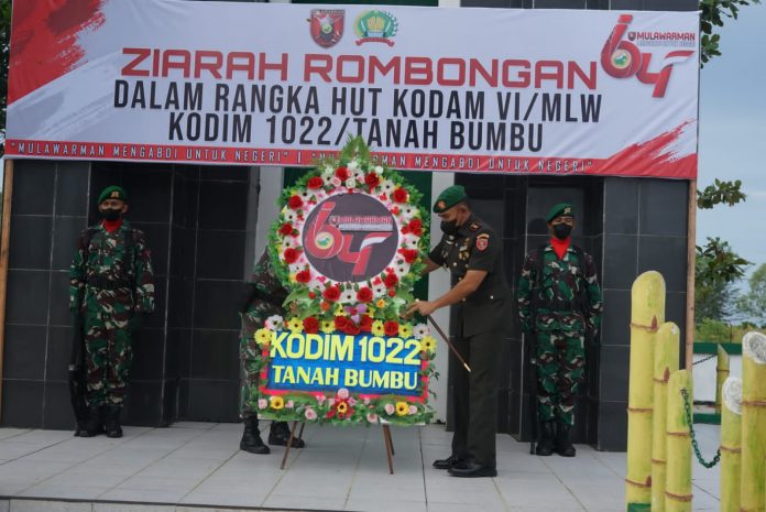 LANGKAR.ID, Batulicin – Ziarah Rombongan dalam rangka memperingati HUT ke-64 Kodam VI/ Mulawarman di laksanakan di Taman Makam Pahlawan (TMP) Mattone Pagatan.