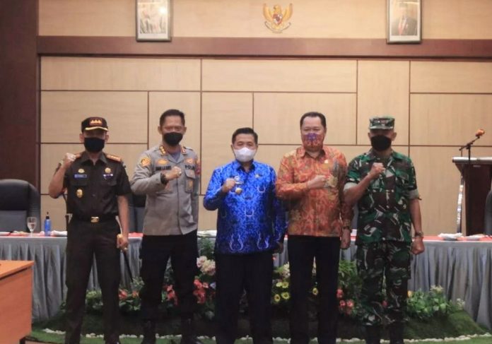 LANGKAR.ID, Banjarmasin – Wali Kota Banjarmasin, H Ibnu Sina memimpin rapat rutin Forum Komunikasi Pimpinan Daerah (Forkopimda), di Aula Hotel Rodhita, Selasa (29/03/2022).