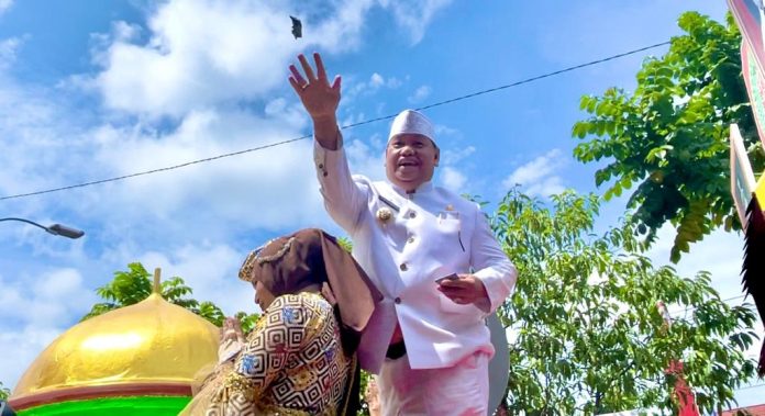 Aksi Bupati Kotawaringi Timur Halikinnor Menaiki Mobil Hias dan membagikan uang kepenonton juga membuat suasana tambah meriah.