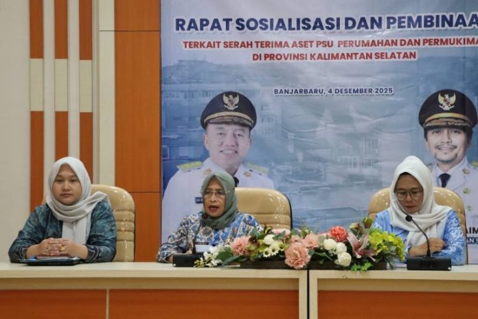 LANGKAR.ID, Banjarbaru – Pemerintah Provinsi Kalimantan Selatan bergerak cepat menertibkan penyerahan aset Prasarana, Sarana, dan Utilitas Umum (PSU) dari para pengembang. Melalui Dinas Perumahan Rakyat dan Kawasan Permukiman (Disperkim) Kalsel, pemprov menggelar sosialisasi dan pembinaan khusus di Aula Lantai 3 Kantor Disperkim Kalsel, Banjarbaru, Kamis (4/12/2025).