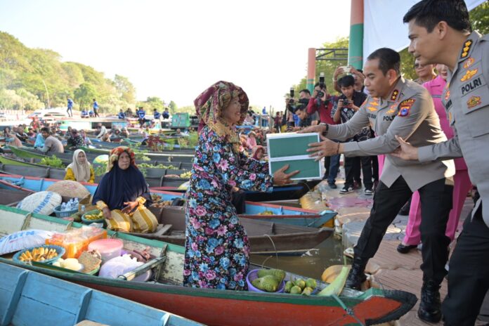 LANGKAR.ID, Banjarmasin – Bakti sosial dalam rangka Hari Bhayangkara ke-77 kembali digelar Polda Kalsel dengan membagikan 500 paket sembako kepada pedagang pasar terapung, di Dermaga Siring Tendean Banjarmasin, Senin (26/6/2023).