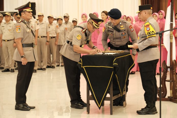 LANGKAR.ID, Banjarbaru – Kapolda Kalsel Irjen Pol Rosyanto Yudha Hermawan memimpin upacara serah terima jabatan (Sertijab) tiga Pejabat Utama Polda Kalsel, serta dua Kapolres di Auditorium Polda Kalsel, Banjarbaru, Jumat (10/1/2025).