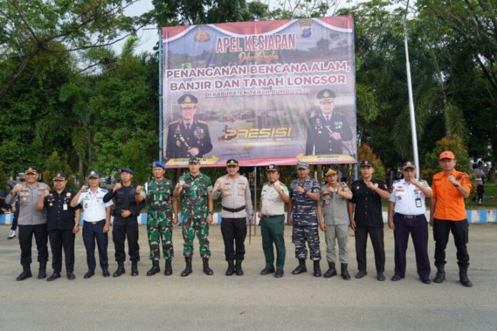 LANGKAR.ID, Batulicin -Kepala Kepolisian Resor Tanah Bumbu, AKBP Tri Hambodo memimpin apel siaga menghadapi bencana alam, banjir dan tanah longsor di Halaman Polres Tanah Bumbu, Selasa (29/11/22) pagi.