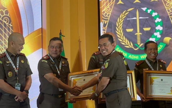 LANGKAR.ID, Jakarta – Kejaksaan Republik Indonesia memberikan penghargaan atas kinerja Kejaksaan Tinggi Kalimantan Selatan (Kalsel) saat Rapat Kerja Nasional Kejaksaan RI Tahun 2023, di salah satu di Jakarta, Jumat (6/1/2022).