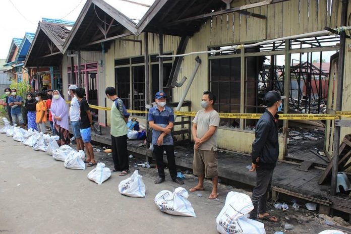 LANGKAR.ID, Banjarmasin -Wali Kota Banjarmasin Ibnu Sina menyerahkan bantuan kebakaran untuk warga Komplek Semanda 5, Kelurahan Sungai Lulut, Kecamatan Banjarmasin Timur, Minggu (3/10/2021).
