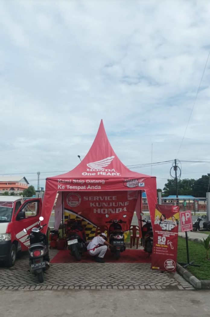 “layanan servis kunjung ini merupakan solusi untuk melakukan perawatan sepeda motor secara berkala dan bersamaan. Cukup hubungi kami maka kami akan datang dan menyediakan booth layanan servis kunjung sehingga melakukan perawatan sepeda motor akan menjadi praktis,” tambah Heru. (timhonda)