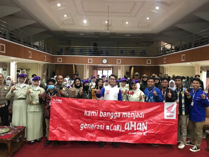 Melalui Kampanye #Cari_aman yang digaungkan PT Astra Honda Motor, Satlantas Polresta Banjarmasin memberikan edukasi materi safety riding seputar penggunaan helm, postur tubuh, teknis berkendara dan tata tertib rambu lalu lintas.